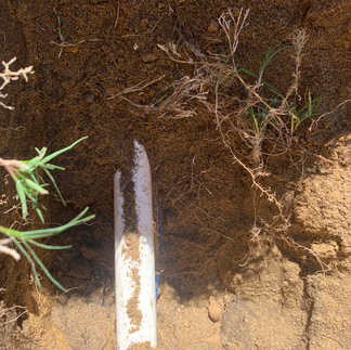 I persisted. I dug down another metre along the pipe and found the bend. I deemed one metre to be quickest because I was looking for Solenoid D, which I thought couldn't be far from the actual sprinkler station boundary. I followed the pipe at 1 metre intervals until - finally - I found the solenoid for Station E. Not far off from where he marked it on the map!